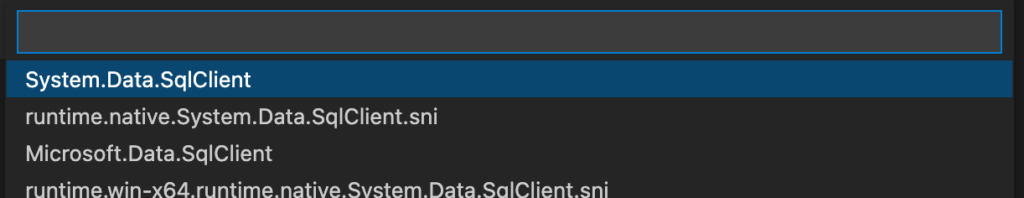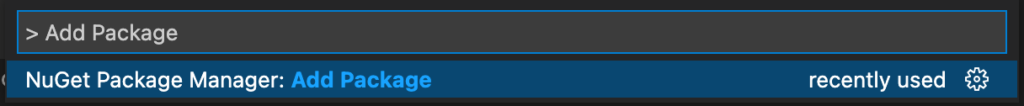步驟1:使用組合鍵(Windows: Control+P macOS: Command+P)叫出對話筐,並輸入”> Add Package”以此啟動NuGet管理工具。