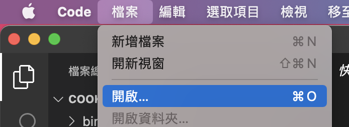 步驟2:開啟Visual Studio Code –> 檔案 –> 開啟…